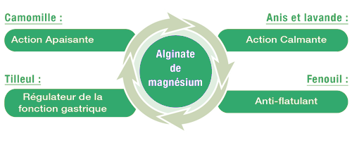 | Enfants de moins de 15 Kg : A base d’alginate de magnésium seul